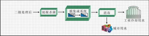 由污水收集、調(diào)節(jié)、預(yù)處理單元、生物處理單元、深度處理單元、再生水儲存、再生水輸配等部分組成。在深度處理單元如過濾,臭氧強氧化和活性炭吸附以及膜集成系統(tǒng)分離。