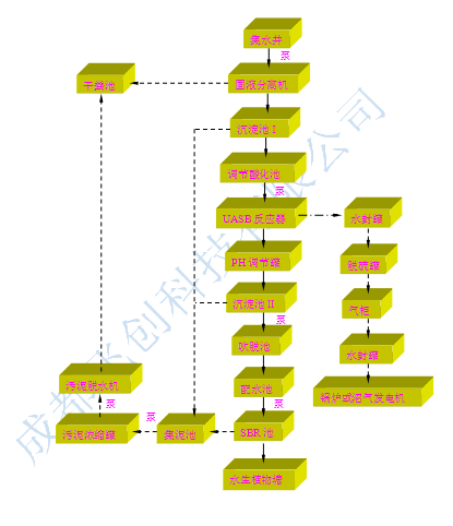 以建設(shè)方提出的廢水水質(zhì)指標(biāo)為基礎(chǔ),結(jié)合我公司積累的廢水處理工程經(jīng)驗(yàn),借鑒其它地區(qū)類似廢水處理的成功經(jīng)驗(yàn),我們制定了固液分離預(yù)處理+UASB反應(yīng)器+曝氣吹脫+SBR的處理工藝。
